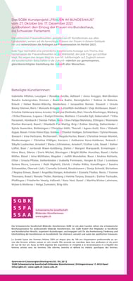 DIE AUSSTELLUNG *FRAUEN IM BUNDESHAUS* IST EIN NATIONALES KUNSTPROJEKT DER SCHWEIZERISCHEN GESELLSCHAFT BILDENDER KÜNSTLERINNEN SGBK ANLÄSSLICH DES 50. JUBILÄUMS DES STIMM- UND WAHLRECHTS DER FRAUEN IN DER SCHWEIZ.