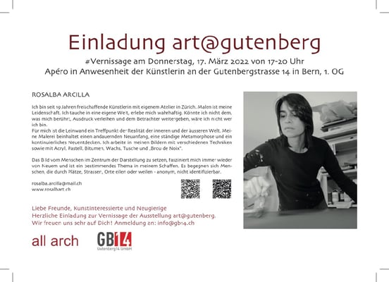 gerne laden wir sie und ihre bekannten ein zu vernissage und künstler-apéro am samstag, 14. april ab 14:00 bis 18:00 uhr bei