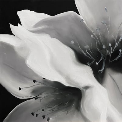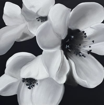Die zweite Serie, Rosalbas Arcillas Baumblüten, sind Pastellbilder von filigraner Zartheit und strahlen Ruhe und Harmonie aus.
